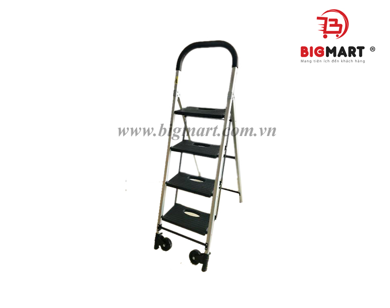 Bigmart giới thiệu thang xếp HT-0080-4 đến với quý khách hàng, Thang có 4 bậc với độ cao khi mở thang là 1600 mm , thích hợp cho khách hàng leo cao làm các công việc dọn dẹp, sửa chữa,… an toàn nhất. Di chuyển thang 1 cách dễ dàng với 2 bánh xe, bạn có đẩy hoặc kéo không mất sức để nâng khiêng thang đến vị trí cần sử dụng.