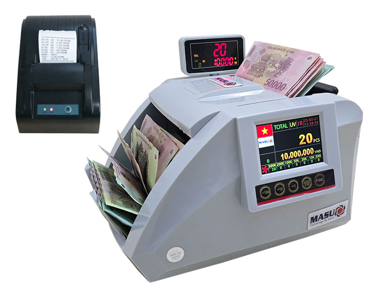 máy đếm tiền MASU 888 Plus + máy in hóa đơn