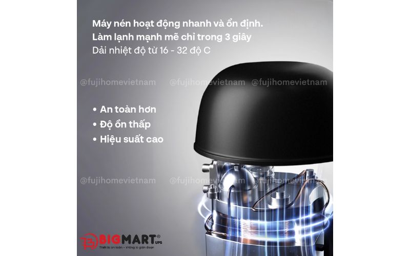 Máy nén Ice Peak chất lượng cao, hoạt động bền bỉ và ổn định Độ ồn của máy thấp chỉ <42dB, thấp hơn khá nhiều so với các dòng điêù hoà di động khác trên thị trường.