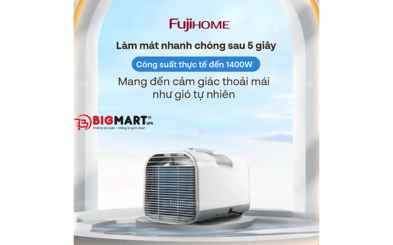 Điều hòa Fujihome di động mini PAC04 với tính năng làm mát nhanh, công suất làm lạnh 1400W tương đương 4000BTU, làm lạnh nhanh chỉ sau 5 giây, có thể điều chỉnh nhiệt độ theo yêu cầu.