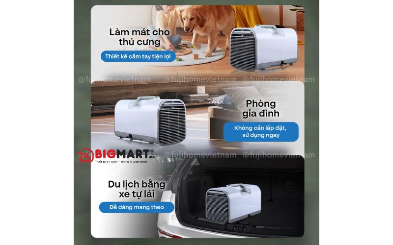 Máy thích hợp sử dụng cho các khu vực phòng ngủ nhỏ, cabin oto, làm mát cho thú cưng, lều trại khi đi dã ngoại, mobihome, kiot... Máy phù hợp sử dụng cho các không gian <=8m².