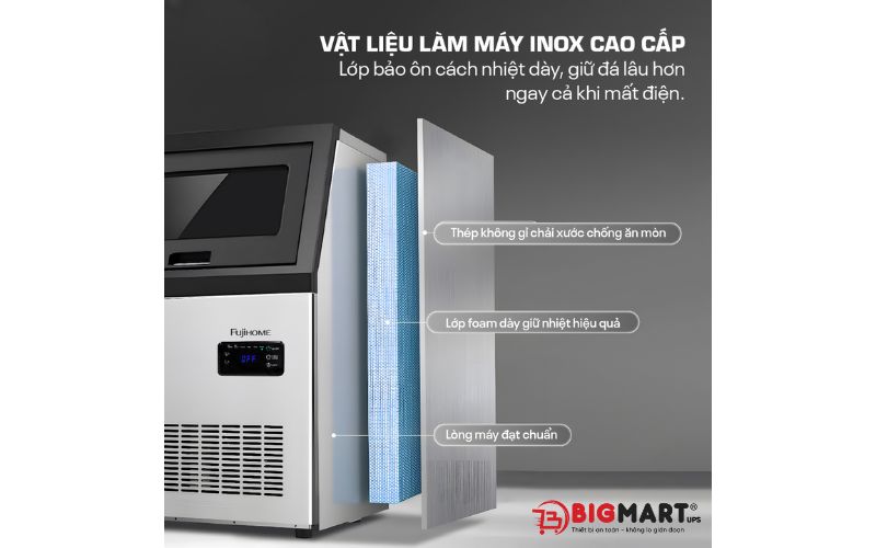 - Lớp bảo ôn dày, giúp giữ đá lâu tan, tiết kiệm điện năng hiệu quả.