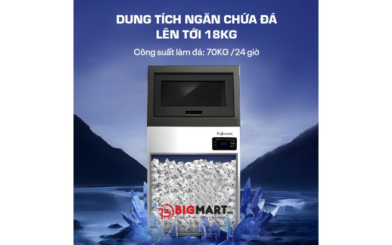 - Nguồn cung đá liên tục: Ngăn chứa 18kg, luôn sẵn sàng phục vụ khách hàng.